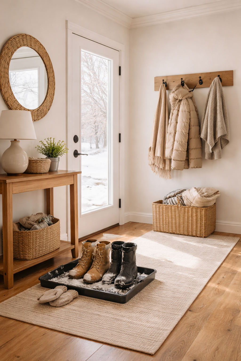 Winter clutter tends to build slowly: coats, boots, mail, bags, and everyday items that don’t have a clear place. Over time, this visual clutter adds to mental fatigue.